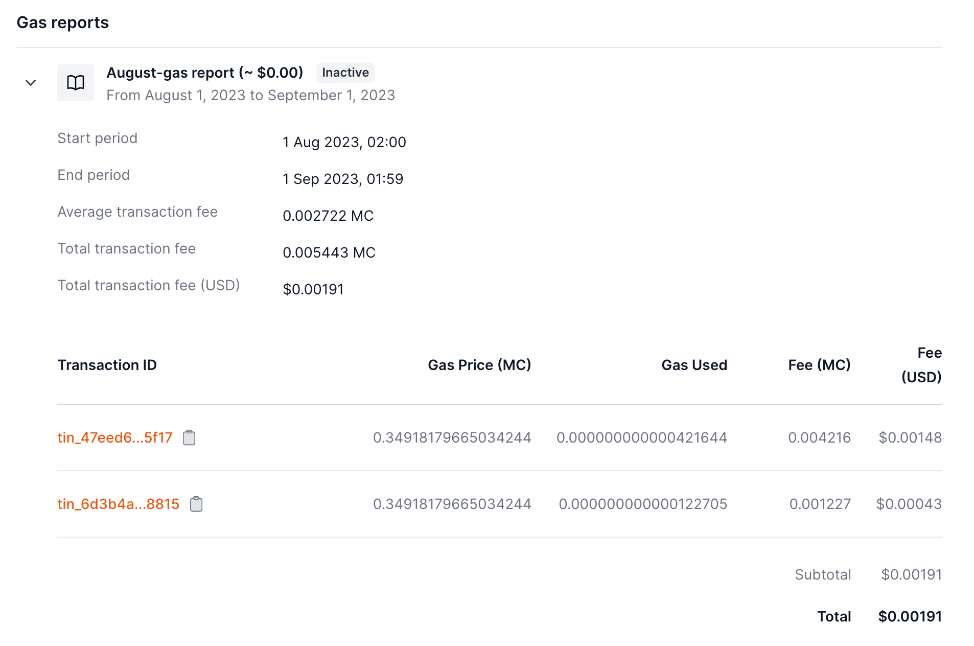 You can monitor gas spending by visiting the policy page.