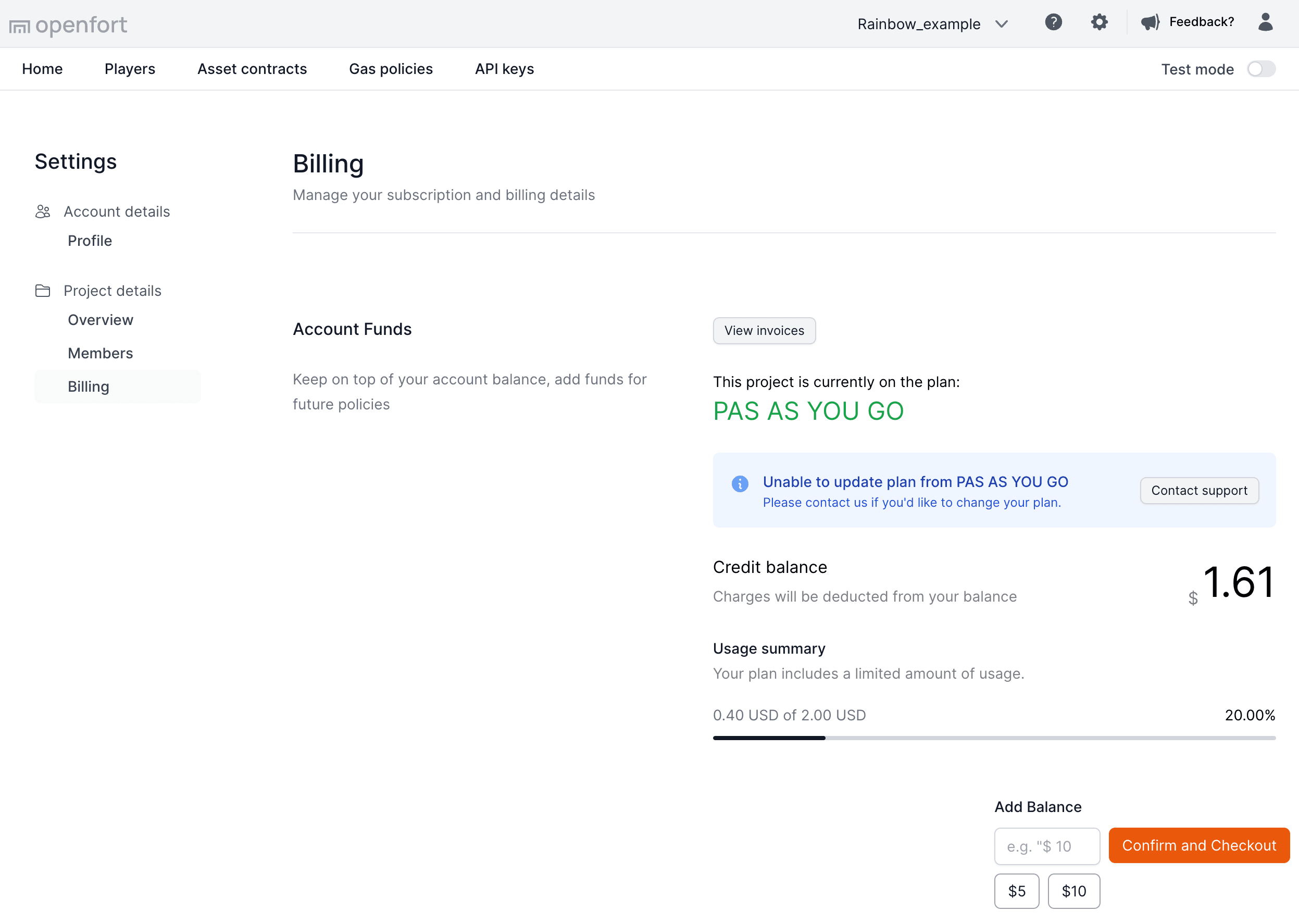 Openfort supports both prepaid and postpaid billing options. For postpaid billing, contact the team.