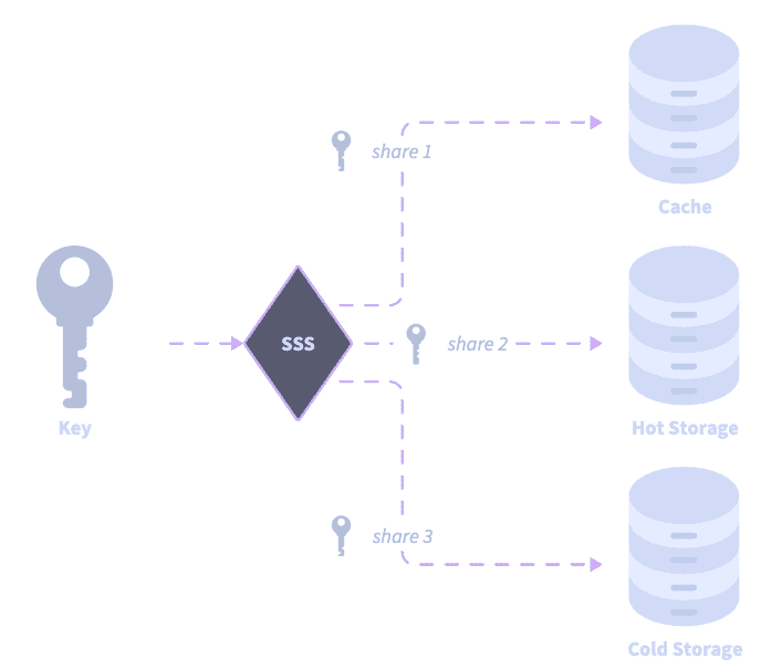 Openfort never stores private keys in their complete form. Instead, Openfort implements a distributed key sharding model using Shamir's Secret Sharing (SSS). This model splits keys across three shares.